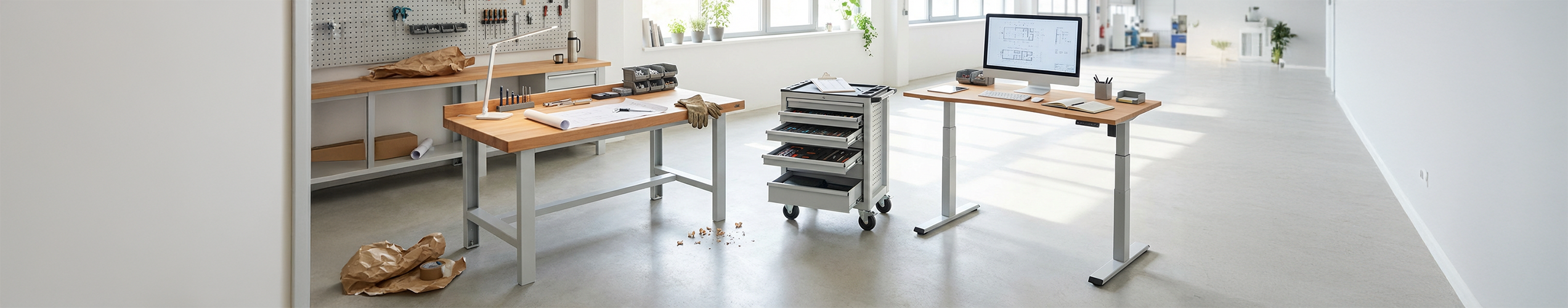 Statt in klassischen Branchen denken wir in Bedürfnissen, Arbeitsabläufen und Herausforderungen. Unsere Themenwelten führen Sie gezielt zu den Lösungen, die wirklich zu Ihrem Alltag passen – von ergonomischen Arbeitsplätzen über effiziente Materialflüsse bis hin zu flexibel kombinierbaren Arbeitsplatzsystemen.