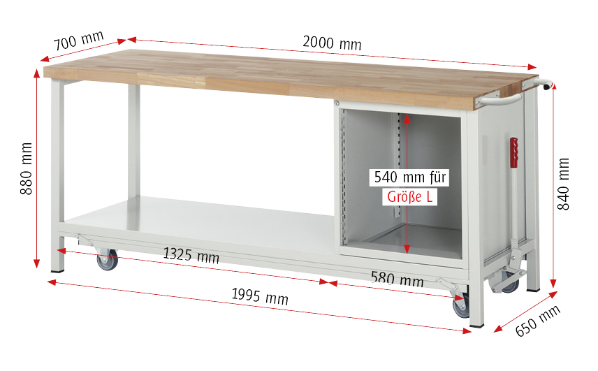für Werkbänke, Breite 2000 mm