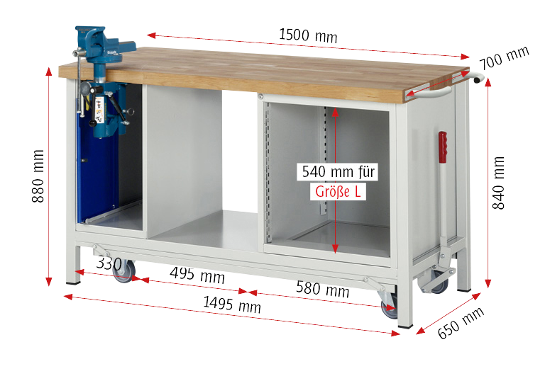 für Werkbänke, Breite 1500 mm