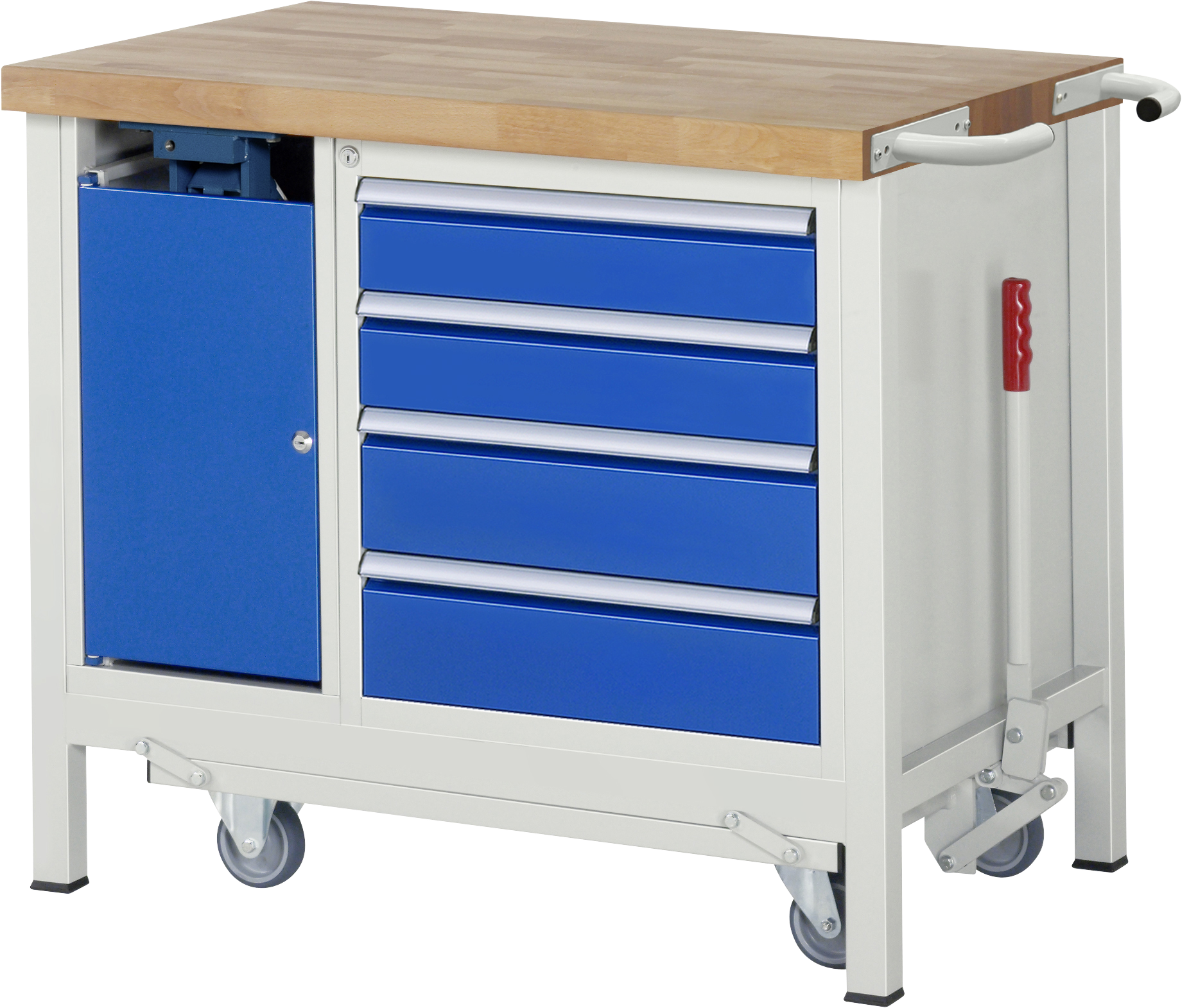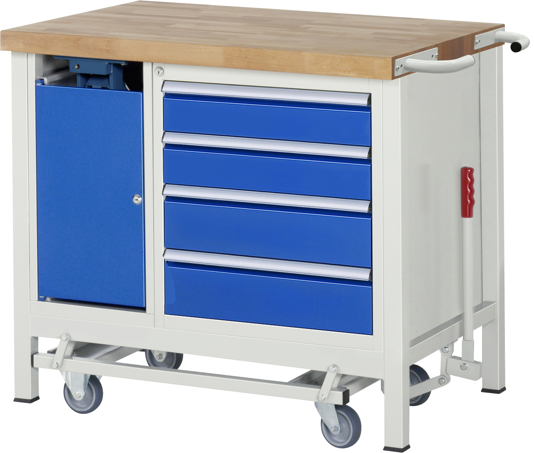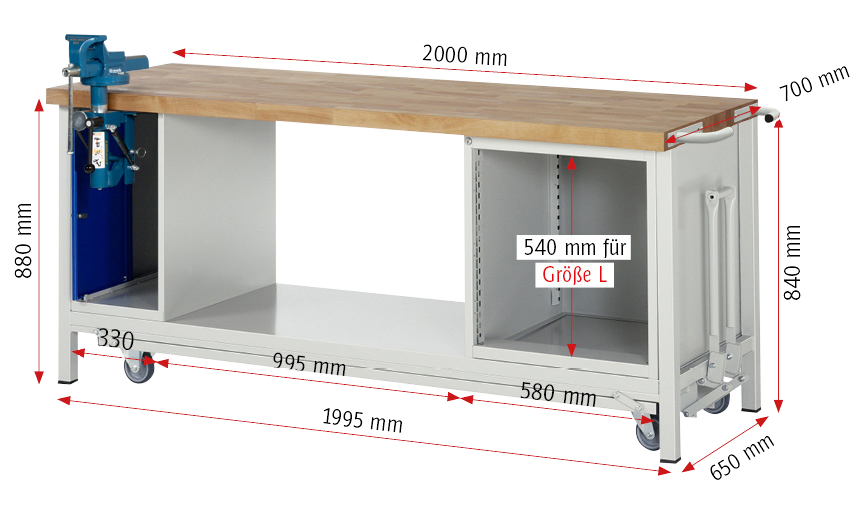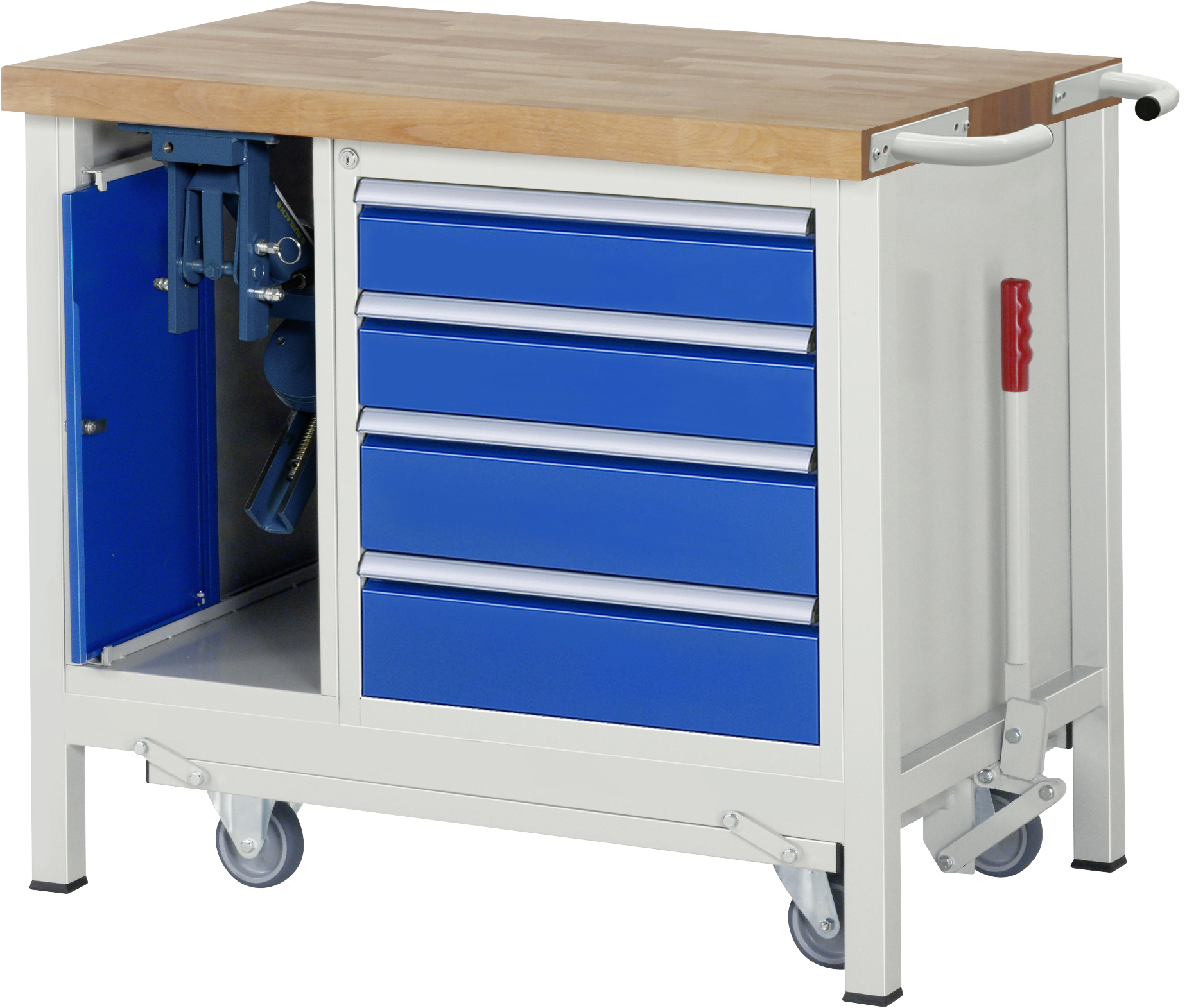 - 1 x Einschiebetür, dahinter 1xSchraubstock (Backenbreite 120mm) mit Klapplift.