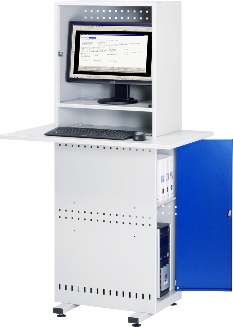 Computer-Säule Modell 2 – Geeignet für den Einsatz als Computer-Arbeitsplatz mit integrierter Arbeitsplatte zur Tastatur- und Mausauflage in Produktions- und Fertigungshallen. Produziert in Balingen-Frommern – Made in Germany.