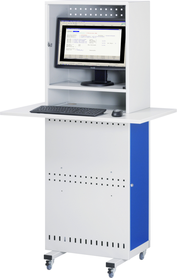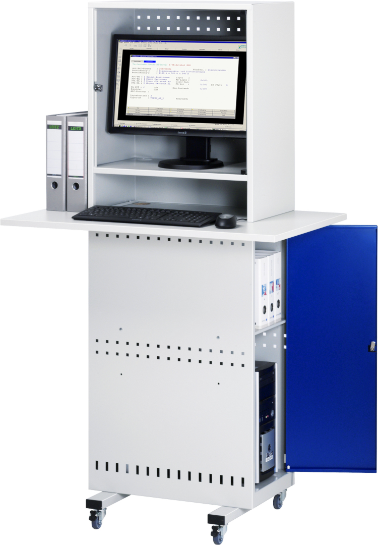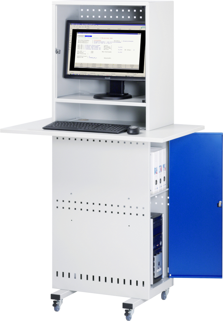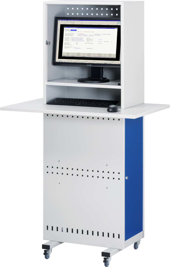 Computer-Säule Modell 2 – Geeignet für den Einsatz als Computer-Arbeitsplatz mit integrierter Arbeitsplatte zur Tastatur- und Mausauflage in Produktions- und Fertigungshallen. Produziert in Balingen-Frommern – Made in Germany.