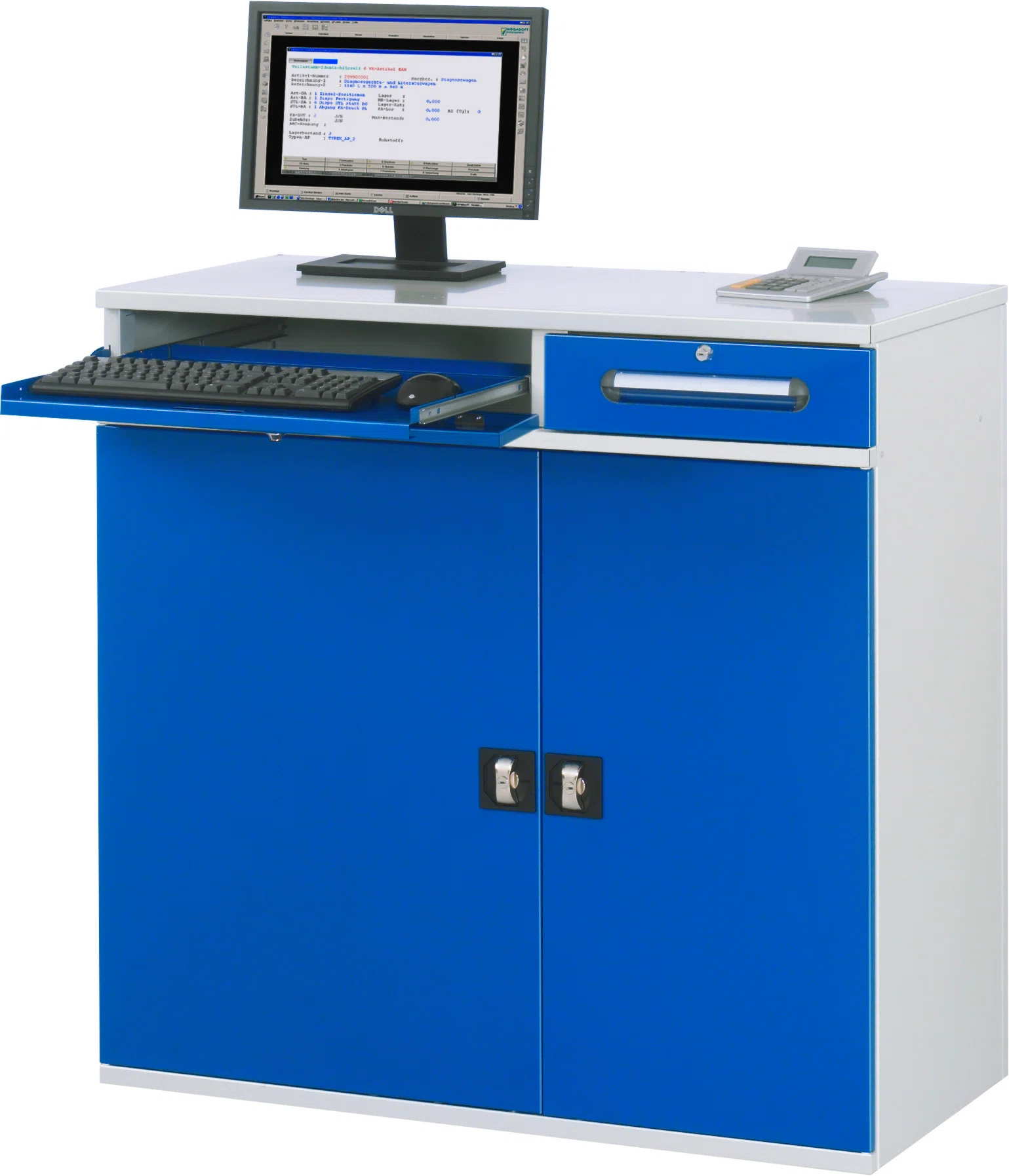 Computer-Schrank - Modell 99 – Geeignet für den stationären Einsatz als abschließbarer Computer-Arbeitsplatz in Produktions-, Fertigungs- und Montagebetrieben. Produziert in Balingen-Frommern – Made in Germany.