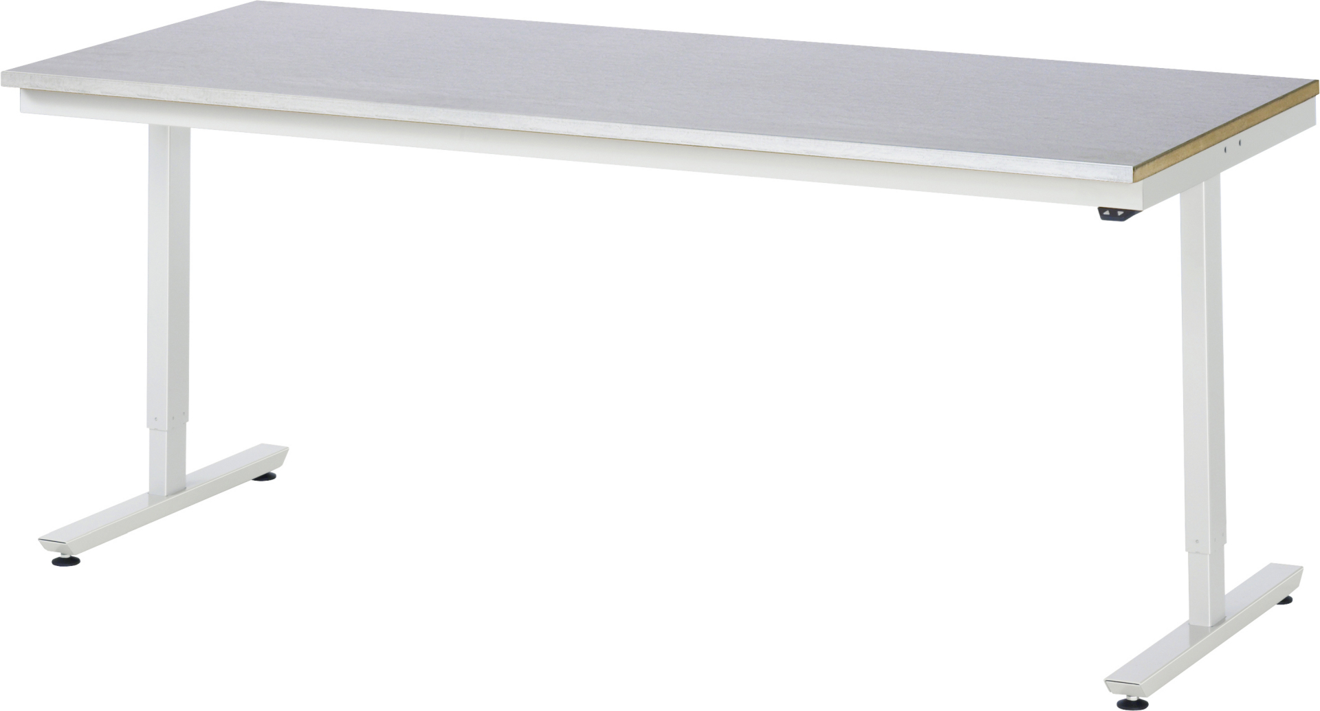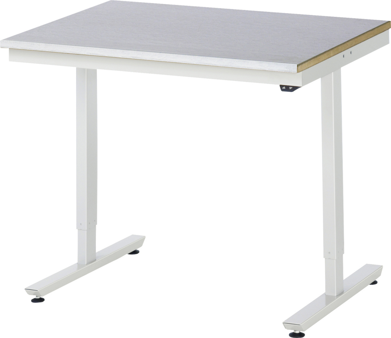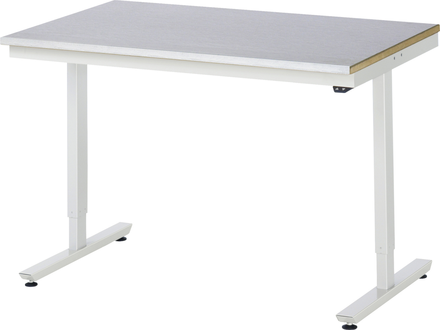 - 2 Hubsäulen (50x80 mm, Prüfung gem. EN 60335-1) inkl. Steuereinheit und Anschlusskabel mit Stecker. Kufen aus Profil-Stahlrohr (60x30x3 mm) inkl. Nivellierfüßen. Kompletter Rahmen aus Profil-Stahlrohr (Stahlrohr 50x25x2,5 mm) oben unter der Arbeitsplatte. Bedienelement mit Auf-/Ab-Taster.