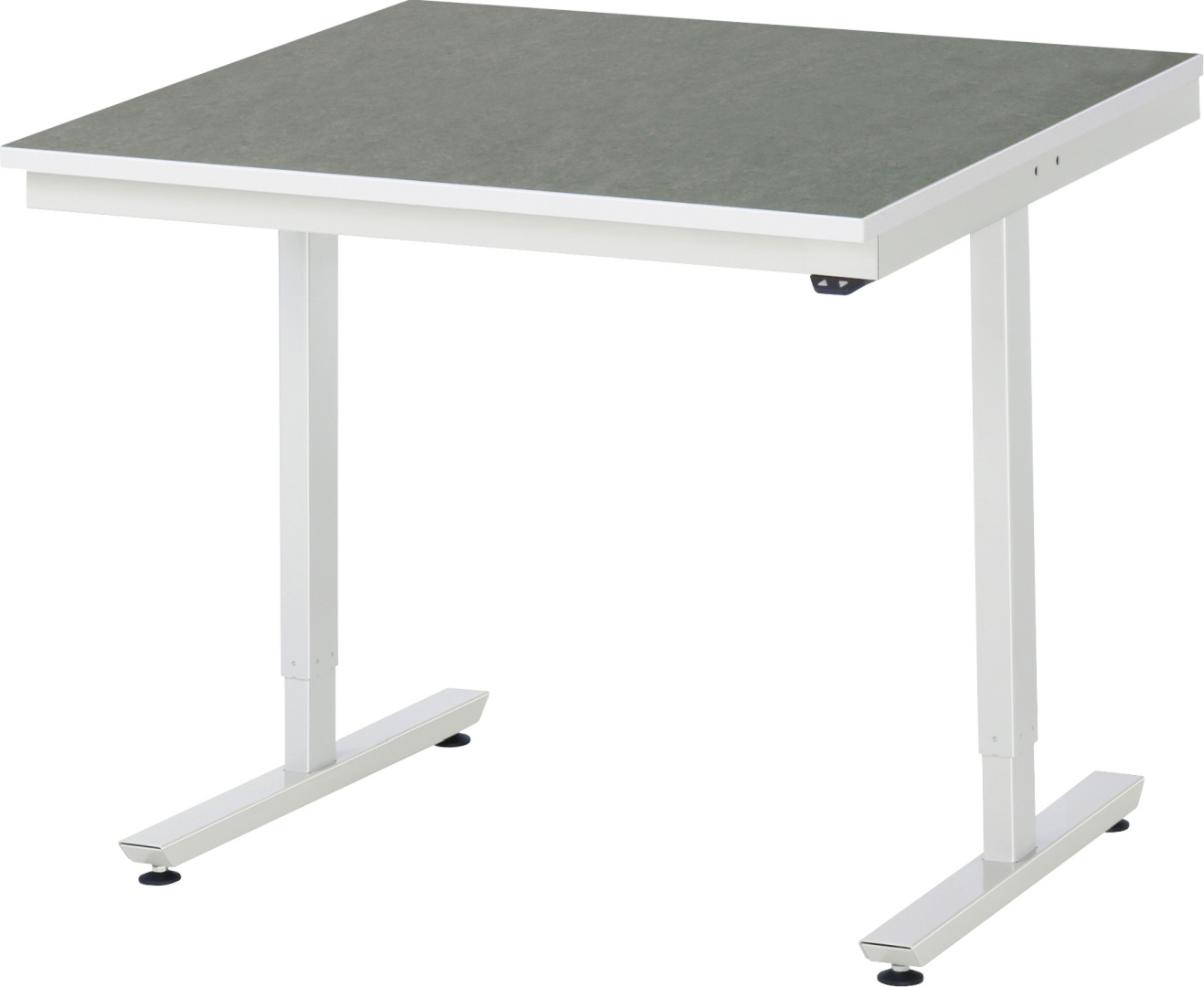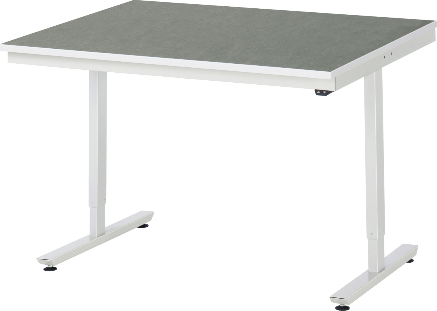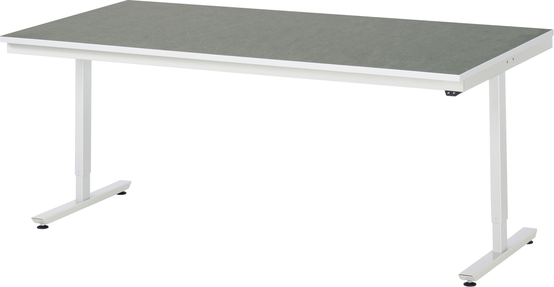 - Oberseite mit einem 2,0 mm starken, weichen und hellgrau marmoriertem Universal/Linoleum-Belag. _x000D_ Antistatisch, fungizid, bakteriostatisch, spritzwasserfest, schmutzresistent, temperaturbeständig. Weitgehend unempfindlich gegen Säuren, Öle, Fette, Lösungsmittel und Chemikalien. Empfindlich gegenüber Alkalien mit einem pH-Wert über 9 (z.B.Seife, Ammoniak). Belag schwer entflammbar (B1) nach DIN4102. Plattenkern aus Spanplatte nach EN309 / EN312 (Emissionsklasse E1). Unterseite mit Gegenzug. Allseitig lichtgraue, antistatische ABS-Kante.