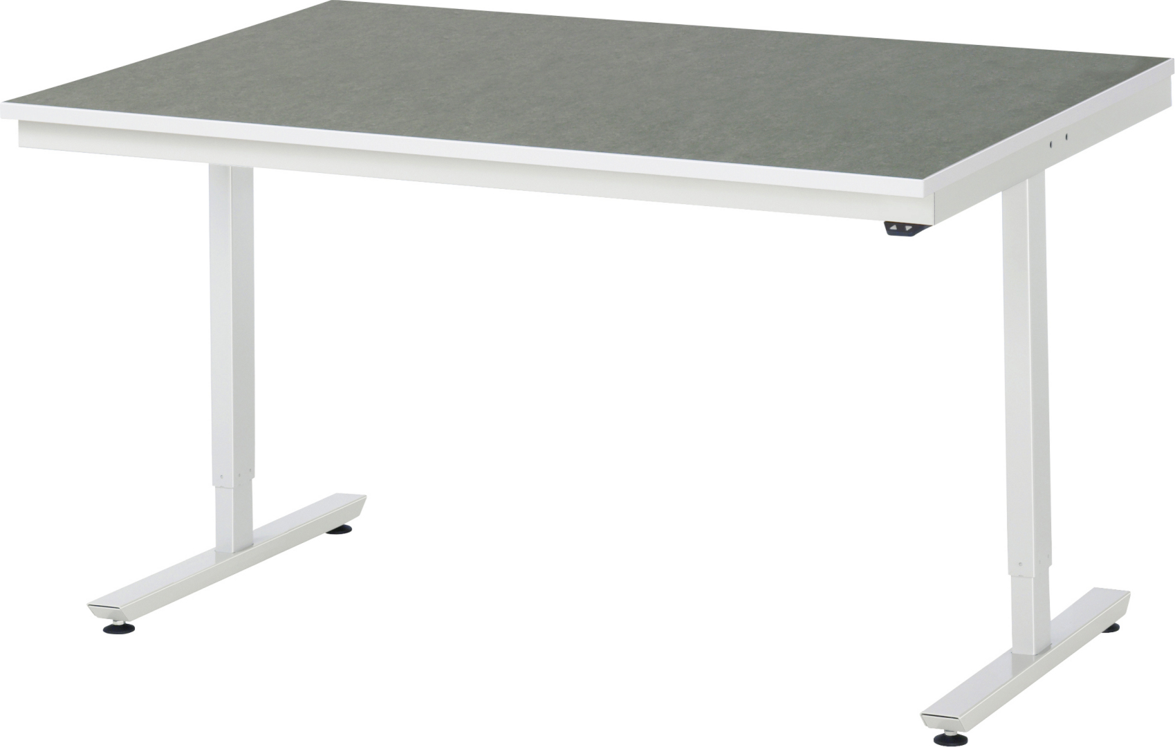 - 2 Hubsäulen (50x80 mm, Prüfung gem. EN 60335-1) inkl. Steuereinheit und Anschlusskabel mit Stecker. Kufen aus Profil-Stahlrohr (60x30x3 mm) inkl. Nivellierfüßen. Kompletter Rahmen aus Profil-Stahlrohr (Stahlrohr 50x25x2,5 mm) oben unter der Arbeitsplatte. Bedienelement mit Auf-/Ab-Taster.