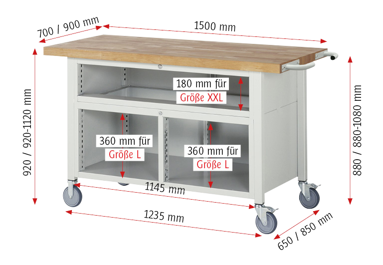 - Oben: 2 x Schublade-Größe-XXL 1xH60, 1xH120 mm