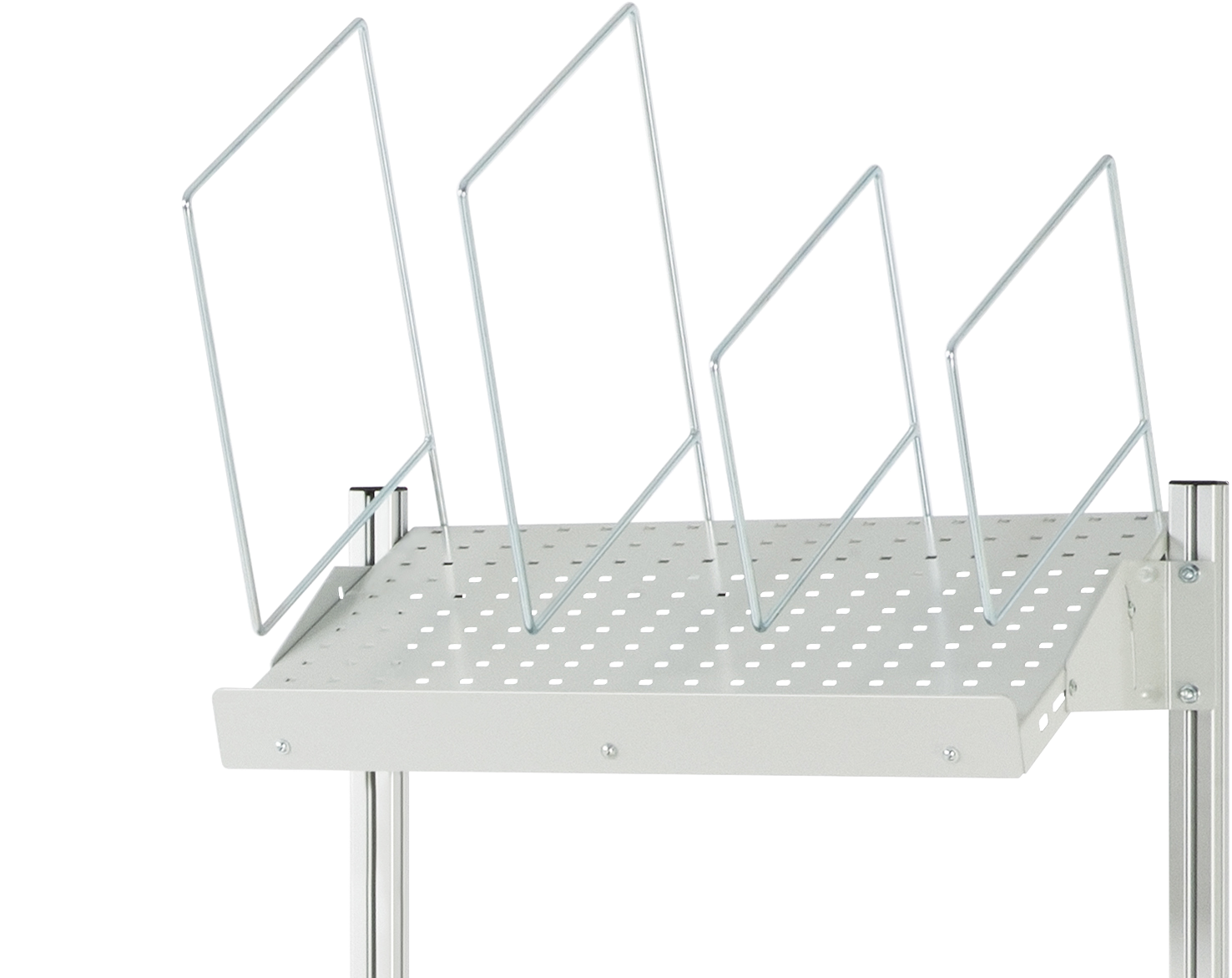 - Anzahl Kartonhalter (Tiefe 435 mm): 2 Stück (Höhe 300 mm) und 2 Stück (Höhe 450 mm) in der Breite frei positionierbar.