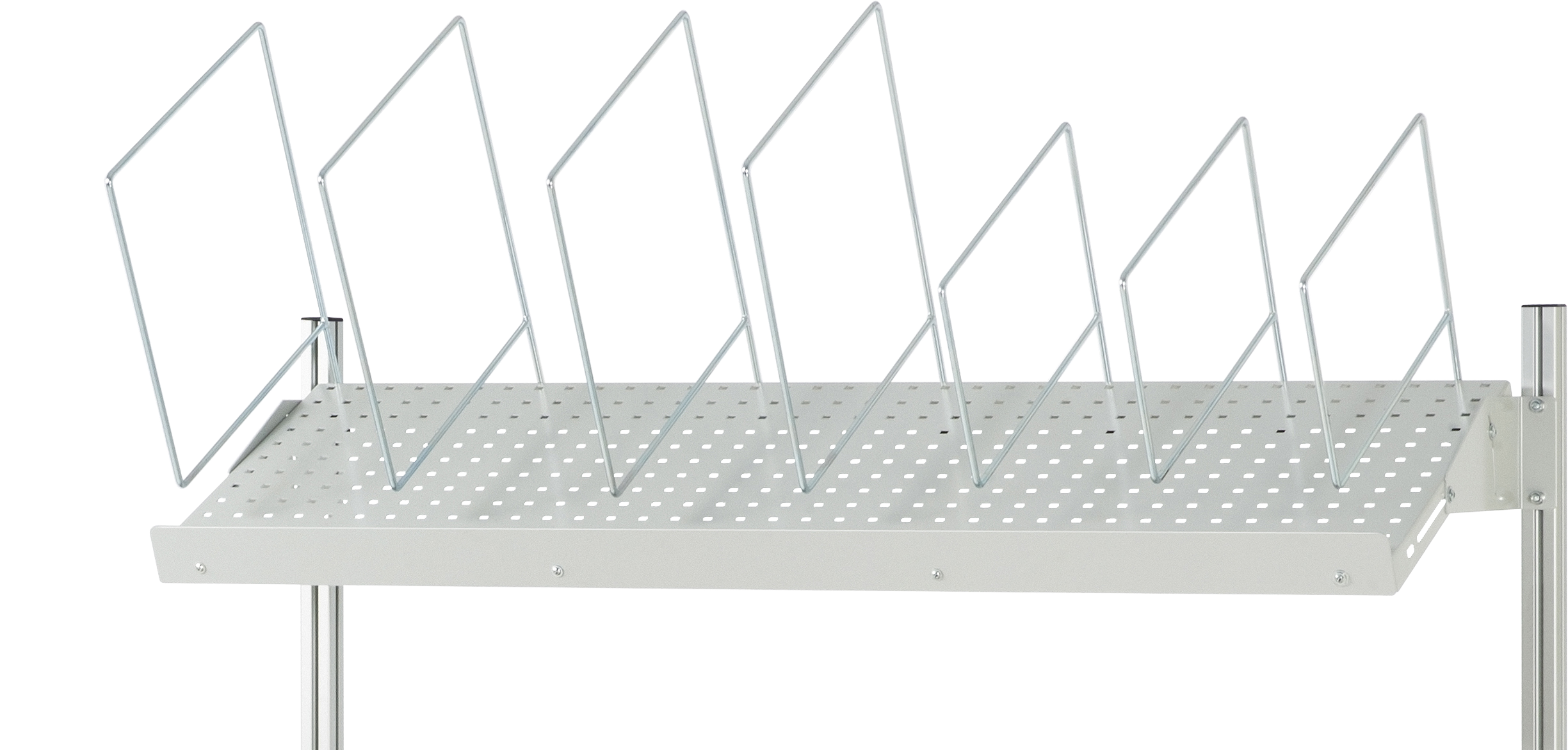 - Ablageebene mit 4-Kant Systemlochung (Lochung 10x10 mm, Abstand Lochmitte-Lochmitte 38 mm).