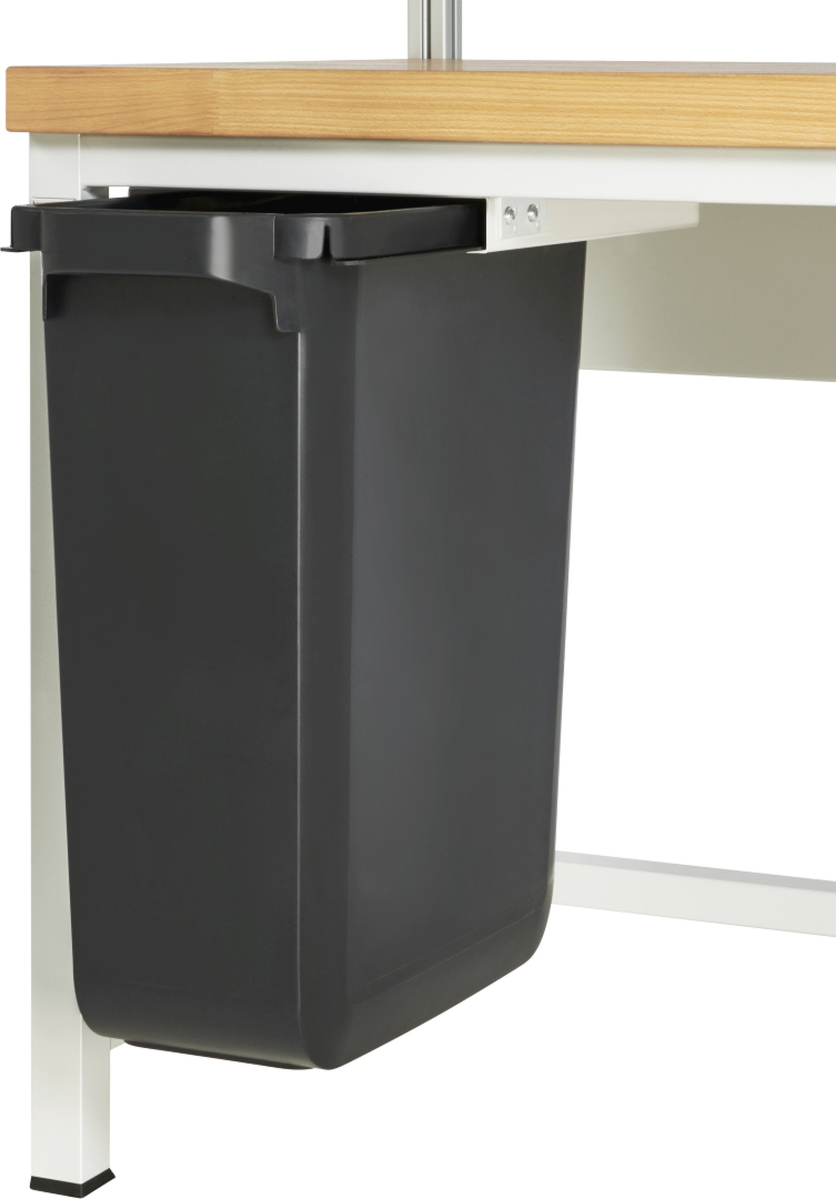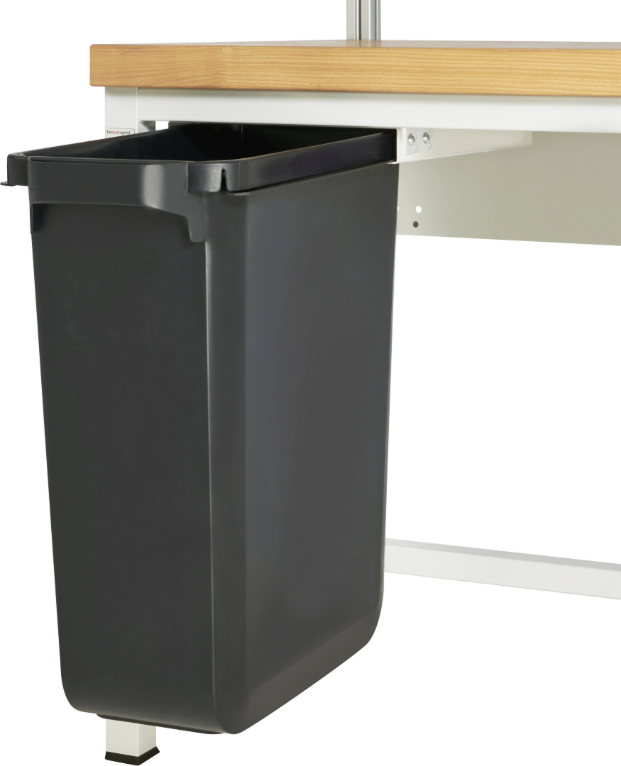 - Ausziehbarer Mülleimer zur Untertischmontage zum Sammeln und Trennen von Abfällen und Wertstoffen am Arbeitsplatz. Mit robusten Tragegriffen für einfachen Transport. Haltevertiefungen auf der Bodenunterseite zum sicheren Entleeren. Mit Klemmschlitzen für Abfallsäcke.