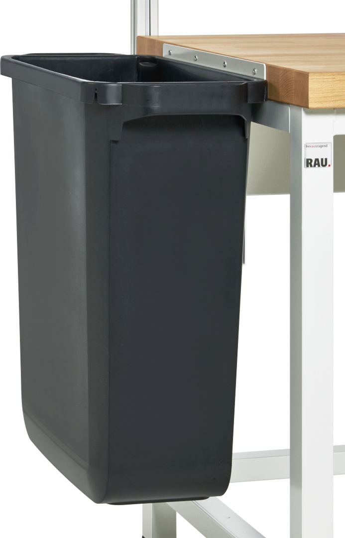 - Mülleimer (Volumen 60 l) zur seitlichen Montage an der Arbeitsplatte. Mit robusten Tragegriffen für einfachen Transport.