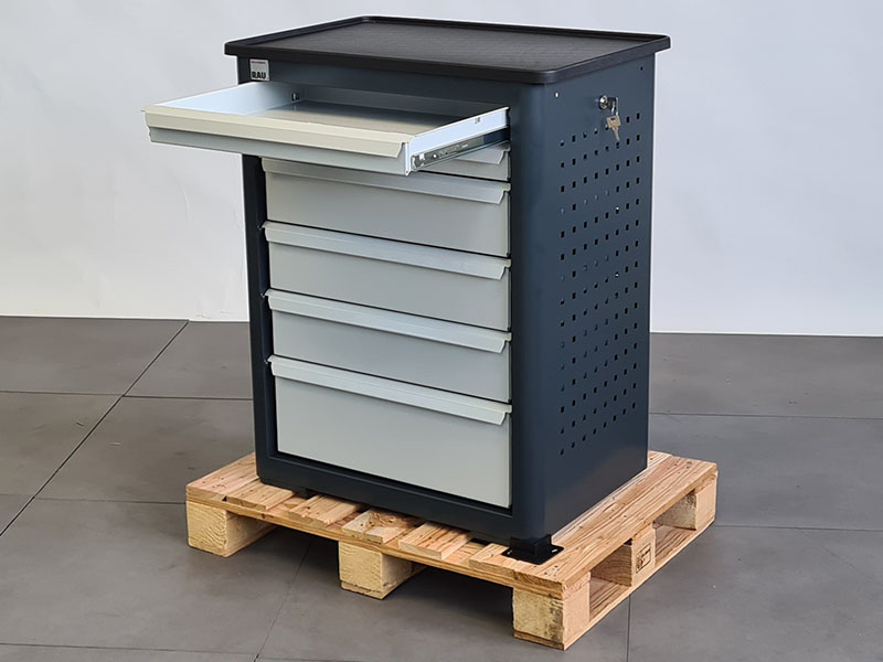 - Basiswerkbank mit Zentralverschluss (seitlich geschützt unter dem Schiebegriff) und mit folgender Einteilung: