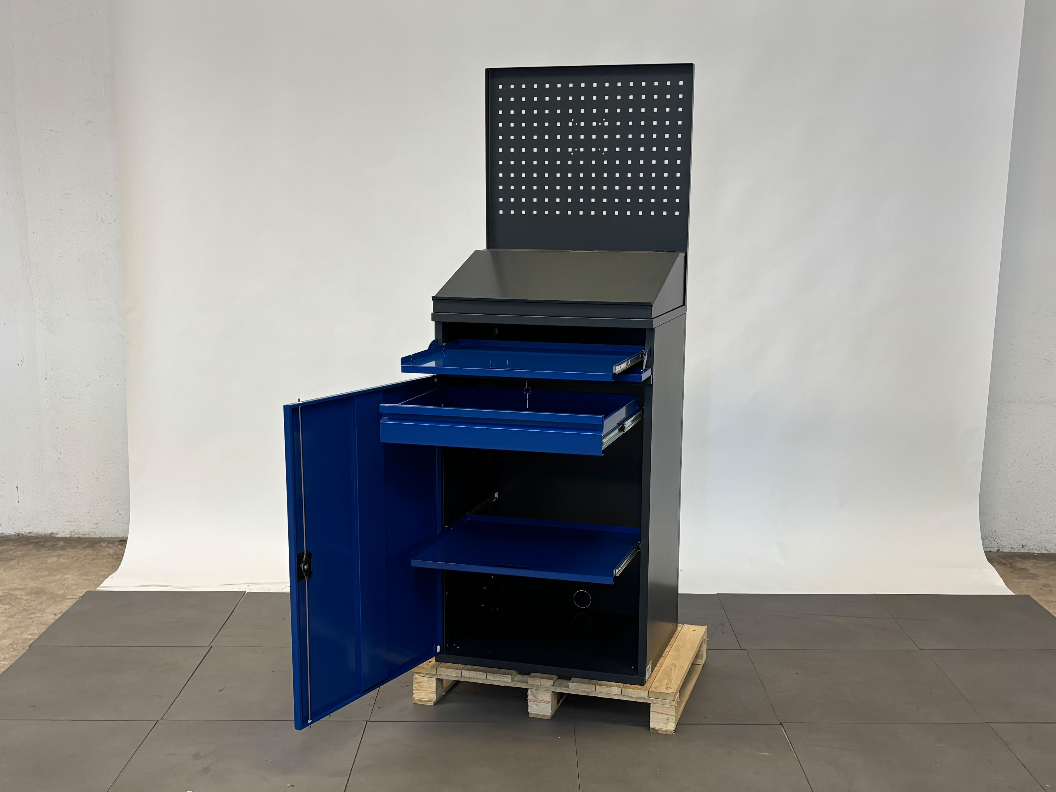 - Farbe: RAL 7016 anthrazitgrau / RAL 5010 enzianblau