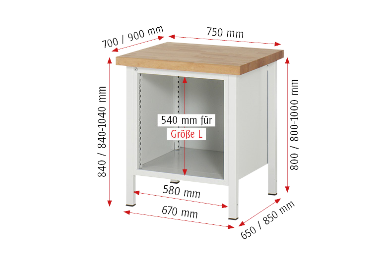 für Werkbänke, Breite 750 mm