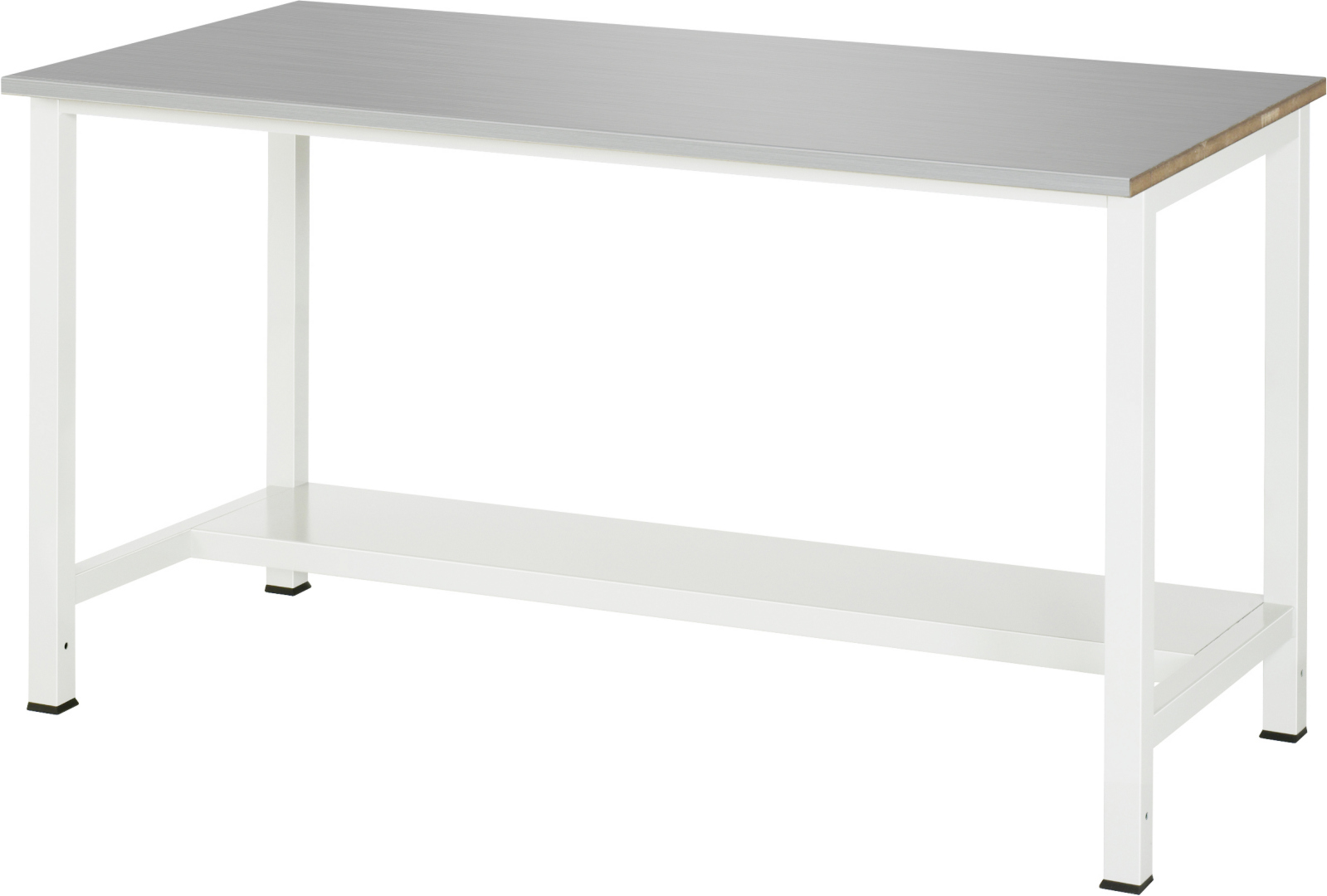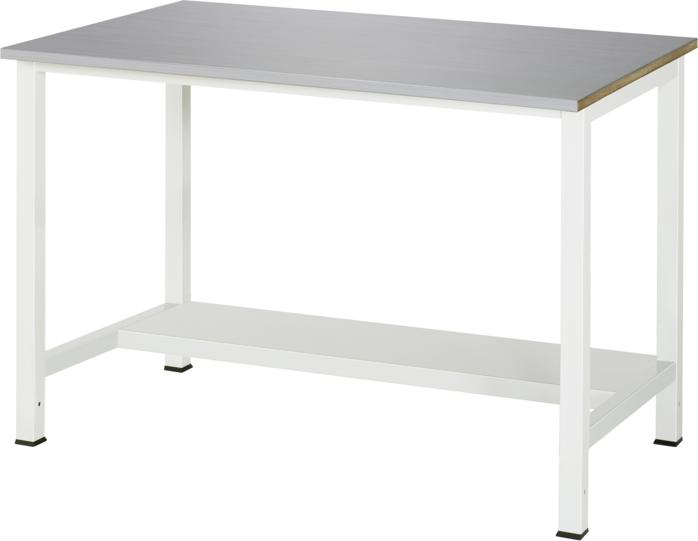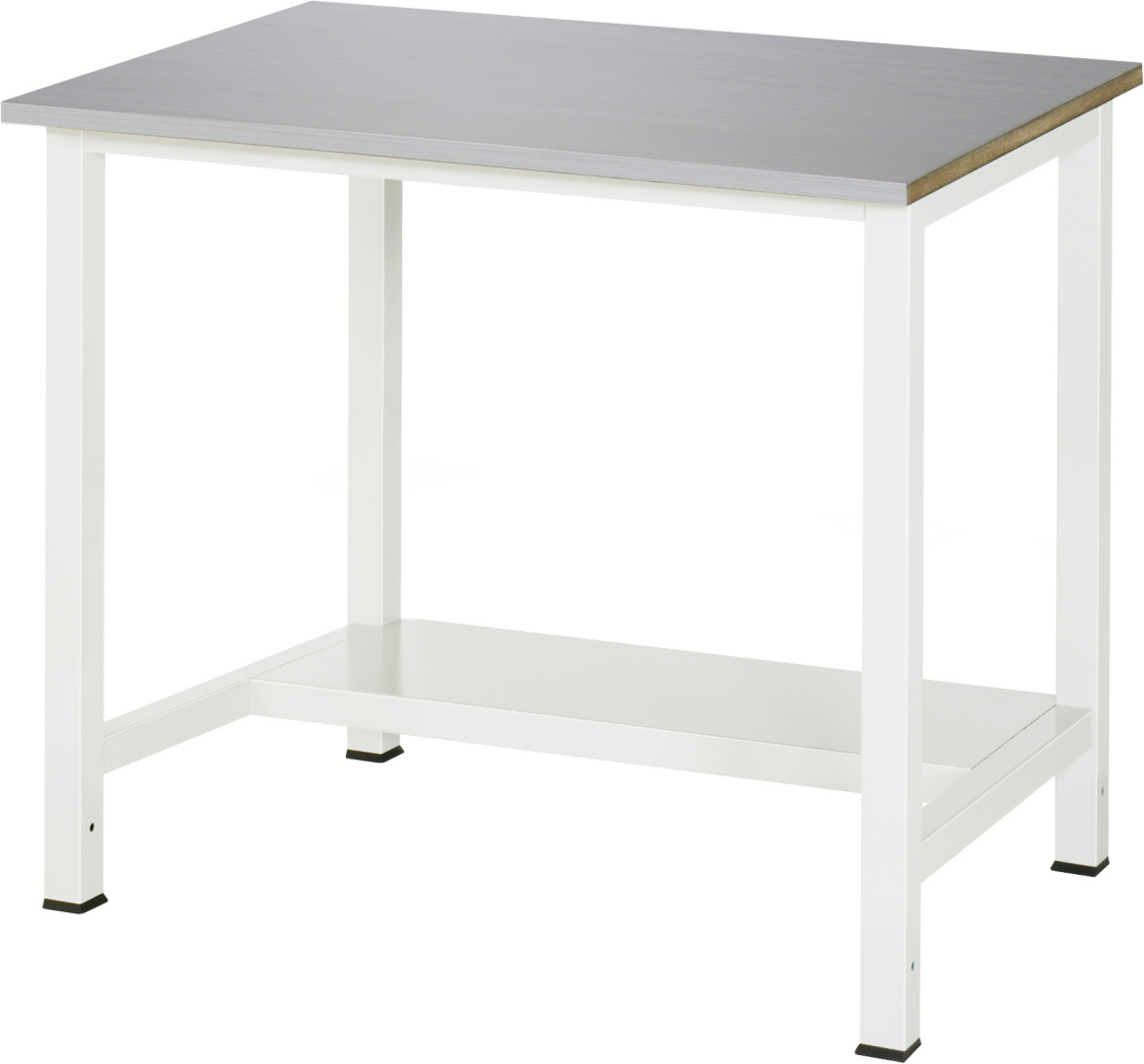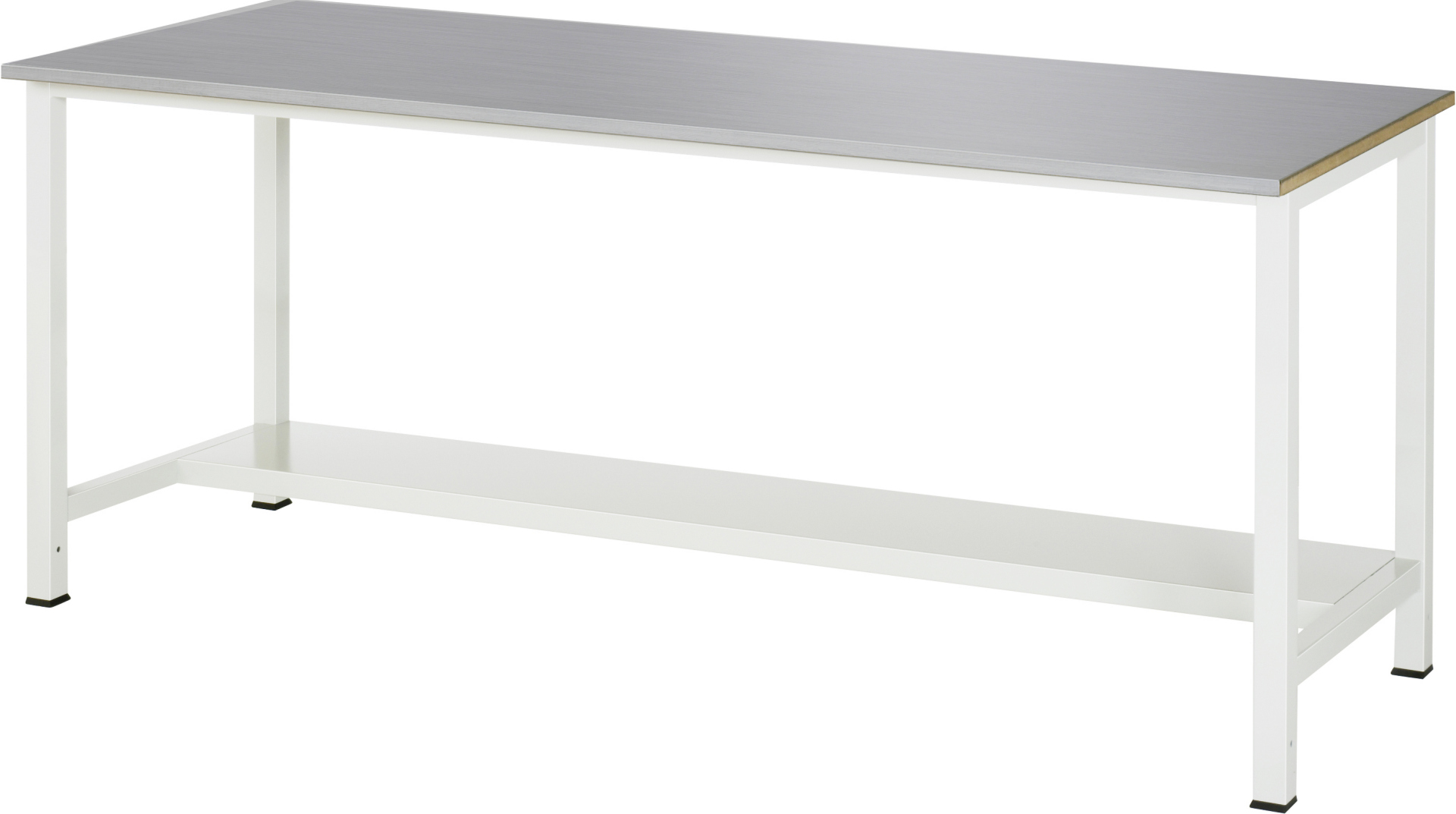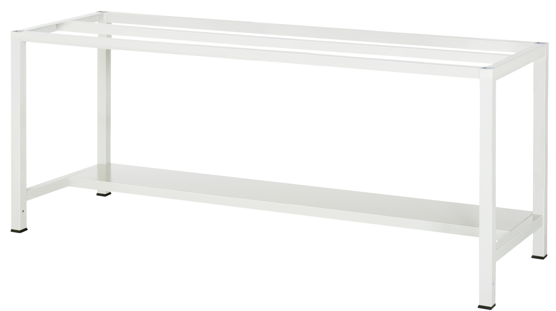 - 4-Fuß Schweißgestell mit zwei Gestellfußpaaren aus Profil-Stahlrohr (45x45x2 mm) inkl. Tiefenverstrebungen (oben und unten). Gestellfüße unten mit Abschlusselement inkl. Anti-Rutsch-Noppe für sicheren Stand. Querstreben aus C-Profil (40x40x2 mm) oben unter der Arbeitsplatte (vorne, mitte, hinten) sowie Ablageboden unten (Tiefe 320 mm, hinten bündig miTSystemunterbau, Fachhöhe 620 mm).